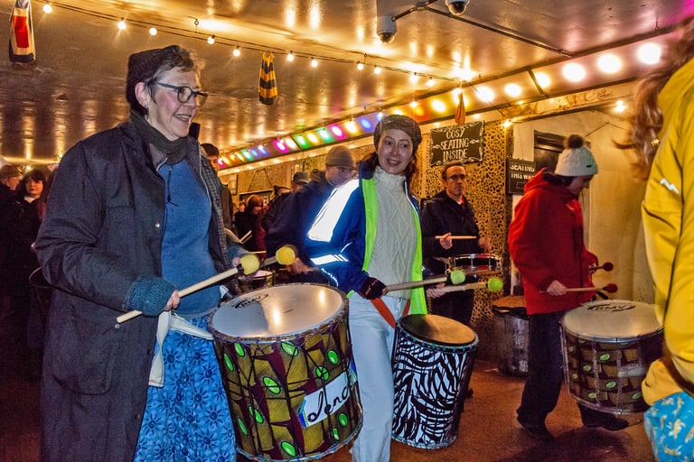 Join us for a vibrant celebration on the solstice itself, everyone gathers for an evening of music, singing, and dancing to brighten the darkest night of the year.